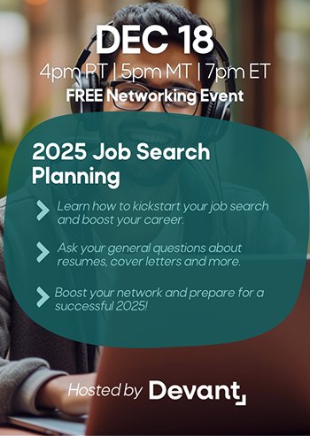 Join Devant career coaches, Keelin and Katerina, to discuss how to kickstart your job search and boost your career in the 2025 new year! This is your chance to get your important questions answered by an expert – Whether it is resume, LinkedIn, interview, or networking advice, we love to share our experiences with you and point you in the right direction.